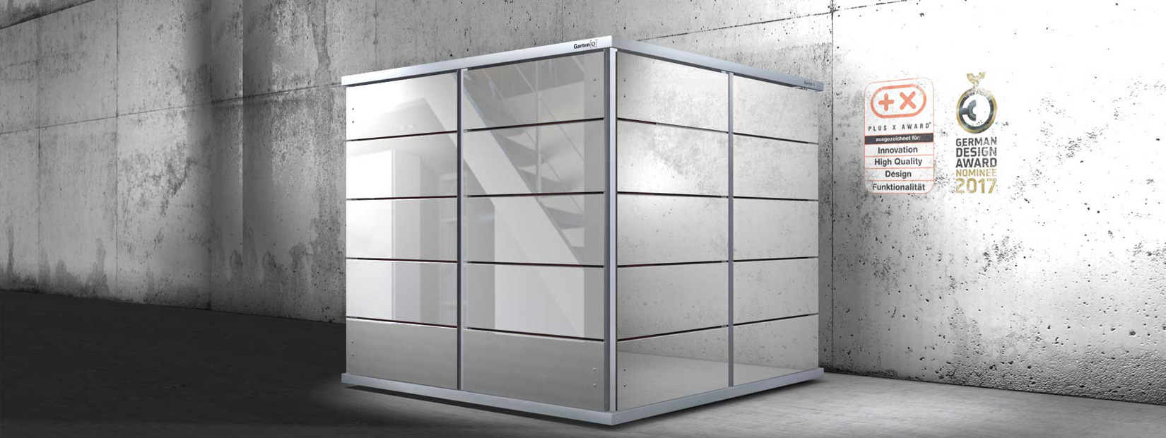 Ob Gartenhaus, Gartenschrank, Mülltonnenbox oder Unterstand: Garten[Q] kombiniert minimalistisches Design mit Ordnung, Übersicht und maximalem Stauraum. Durch mehrere zugängliche Seiten wird die Begehbarkeit einfach nach außen verlegt. So können Sie den Stauraum bis unters Dach gezielt nutzen!